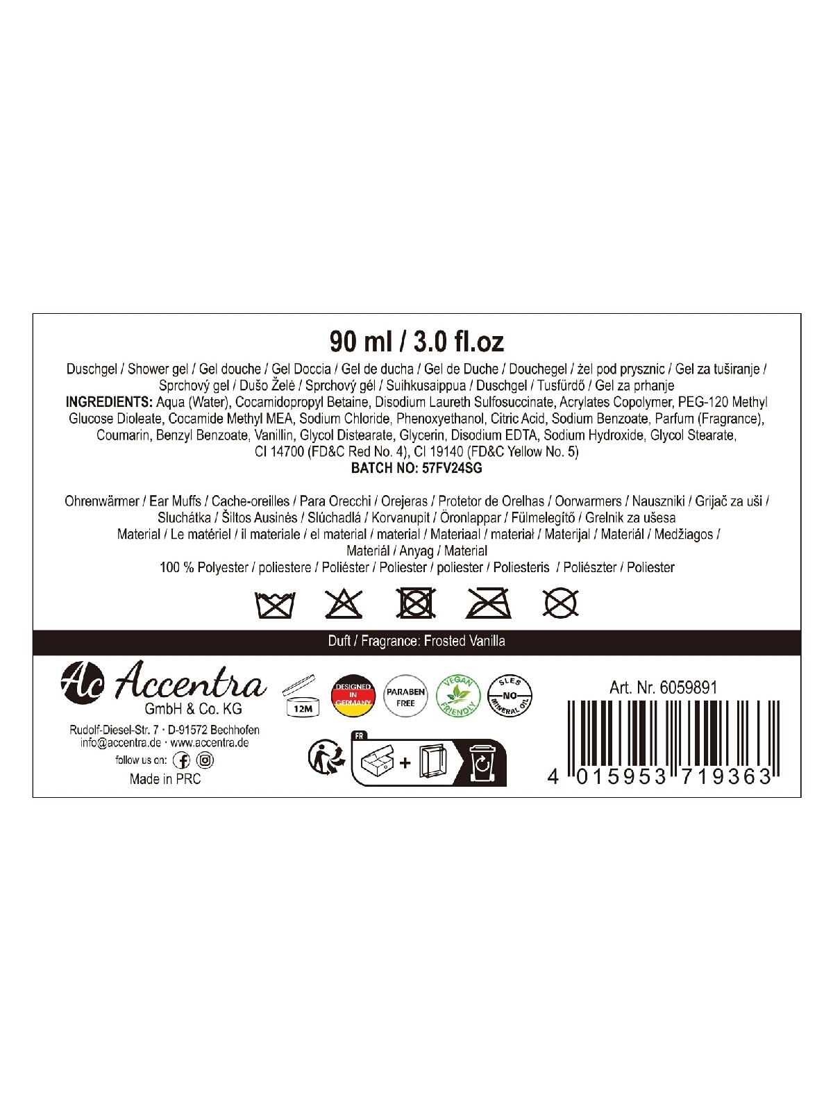 ACCENTRA Рождественский косметический набор: гель для душа с ароматом ванили (90 мл) и зимние наушники